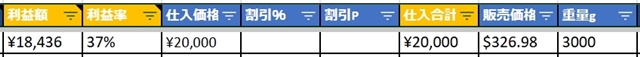 計算表に入力していきます。今回は分厚い専門書籍なので余裕をもって3KGとしました。予想利益は「¥18,436」と大変、利益率の高い商品がみつかりました!