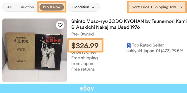 eBayに移動し、商品タイトルを張り付け検索します。当然「Price + Shopping:lowest first(安い順)」と「Buy it Now( 即決価格)」に設定してください。現在のeBay価格は「$326.99」ということがわかりました。