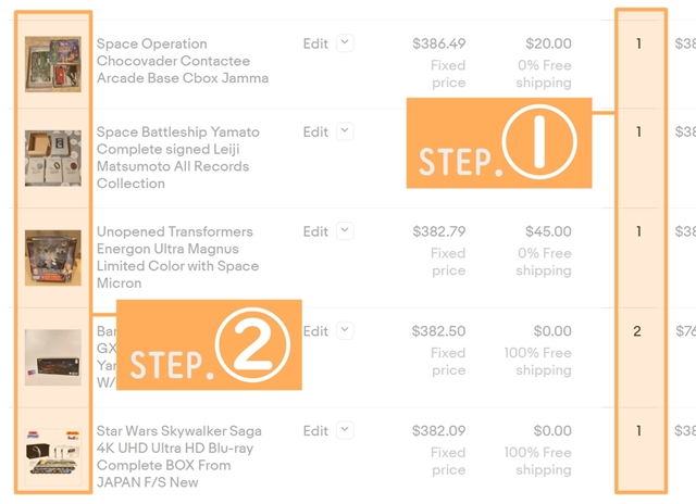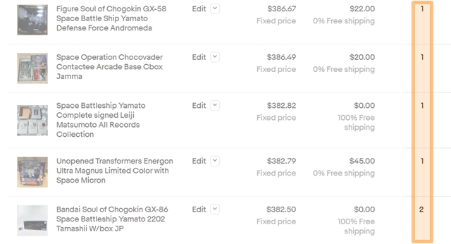 まずは数字の部分だけに限定して「サー」と最後まで流して見ていきます。この中で「2~5個」売れている商品があったらその場でリサーチを行います。素早く軽く流すイメージで見てきましょう。